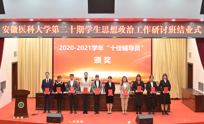 会上表彰了我校2020-2021学年“十佳辅导员”和学校辅导员宣讲团“我为学生说党史”获奖代表。