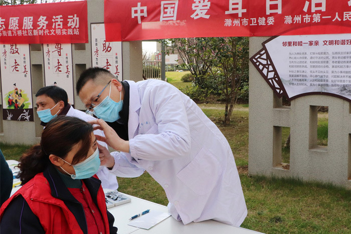 3月3日,全国“爱耳日”当天,附属滁州医院与当地南谯区万桥社区联合开展了主题义诊活动。