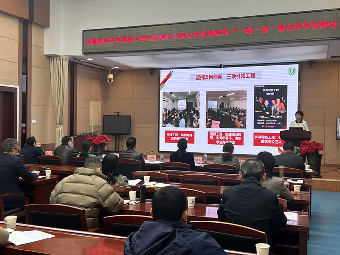 3月9日上午,我校在知行楼一楼会议室举行深化新时代大学生社会主义核心价值观教育“一院一品”项目评审答辩会。校党委副书记刘群英出席会议。