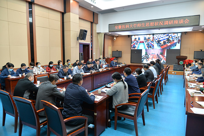 学校各学院、各直属附属医院及相关职能部门负责人参加会议,附属巢湖医院、附属阜阳医院以视频连线方式,线上参加会议。(新闻中心)
