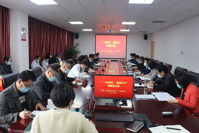 该院迅速成立推进“一改两为”工作领导小组,由院党委书记和院长担任组长,下设办公室,制定大学习大讨论活动实施方案,明确了内容、目标和任务,规定了时限和结果,部署在全院开展大学习大讨论活动,要求各党支部立足党建引领,结合“支部书记领办事项”,制定支部活动方案,落实责任要求,明确具体措施,把“一改两为”作为当前及最近一段时间的中心任务抓紧抓细抓实,突破工作难点、打造服务亮点,促进医院高质量发展。