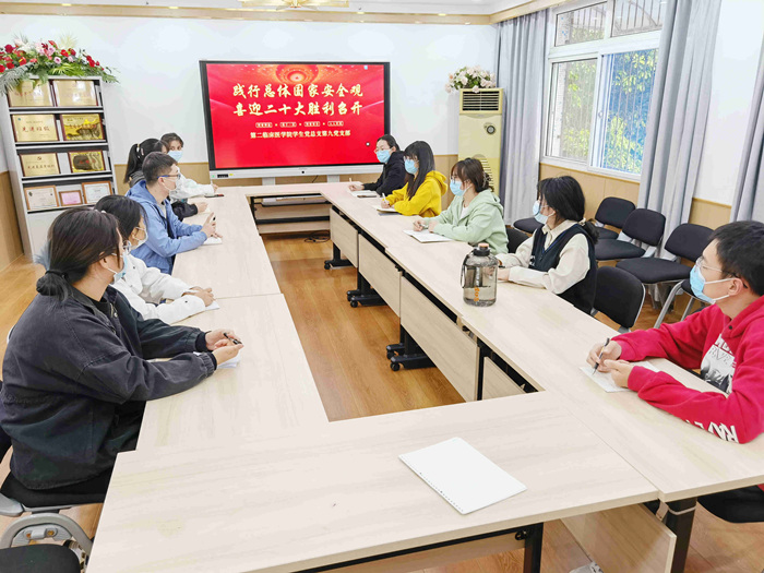 该院将不断把国家安全教育融入到学生的思想价值引领和日常的教育管理工作中去,引导学生将国家安全意识转化为自觉行动,强化责任担当,形成人人懂国家安全、人人守国家安全的良好氛围,确保疫情防控期间学校政治安全、师生平安、校园稳定、运转有序,凝心聚力迎接党的二十大胜利召开。(第二临床医学院学生党总支 翟翔)