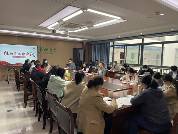 4月15日下午,组织部召开组织员培训工作会议,对2022年度发展党员、基层党组织换届和支委增补等工作进行培训。校党委常委、党委组织部部长李阳新出席会议并讲话,校党委副处级组织员黄介梅主持会议。