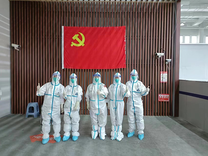 临时党支部让鲜艳的党旗在“疫”线高高飘扬,也让群众防疫有了主心骨。在完成超负荷的工作之余,临时党支部利用短暂休息时间多次召开线上会议,传达安徽省卫健委副主任、援沪医疗队党委书记、总领队杨绪斌关于疫情防控的最新会议精神,组织全体医护人员认真学习疫情防控、院感防护、核酸采样知识,鼓励大家在做好疫情防控工作的同时,树立信心,鼓足干劲,共同筑牢抗击疫情“红色防线”。