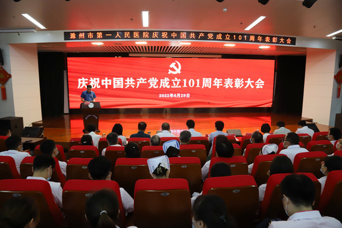 6月29日下午,附属滁州医院召开庆祝中国共产党成立101周年表彰大会。该院党委书记刘家珍讲授专题党课,院党委副书记汤德刚主持会议。