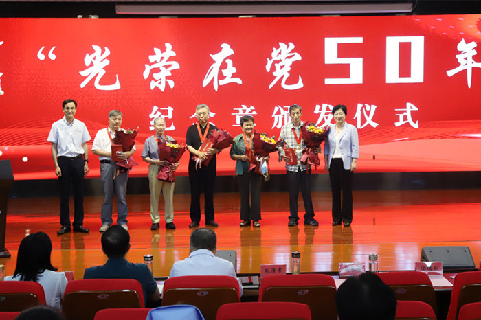 会上,院领导为5名党龄超过50年的老党员代表颁发了“光荣在党50年”纪念章,并送上鲜花和慰问金。12名新党员进行了入党宣誓仪式,老党员代表为新党员佩戴了党员徽章。会上对5个先进党支部、18名优秀党务工作者、21名优秀共产党员及18名优秀党员志愿者进行了表彰,4名受表彰代表上台发言。