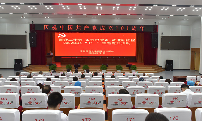 近期,附属宿州医院举行“喜迎二十大,永远跟党走,奋进新征程”主题党日系列活动,庆祝中国共产党成立101周年,弘扬伟大建党精神和抗疫精神,激励全院广大党员干部坚定信念跟党走、矢志奋斗谱新章。