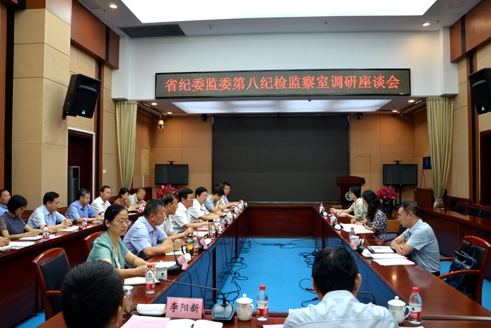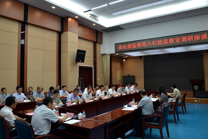 9月8日上午,省纪委监委第八纪检监察室主任张琼一行3人,围绕加强“一把手”和领导班子监督、推动“两个责任”贯通协同、落实意识形态工作责任制和深化校内巡察整改等方面工作,来校座谈调研。校党委书记顾家山主持座谈会并作全面情况汇报,全体校领导出席座谈会。