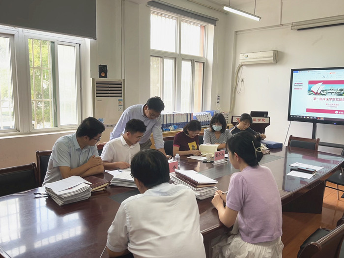 9月29日上午,第一临床医学院学生党总支开展学生党支部党建工作自查,对学院下属15个学生党支部的标准化规范化建设以及发展党员工作等进行集中检查。该院党委副书记、学生党总支书记李琮等学生党总支班子成员参加检查,校党委组织部副处级组织员黄介梅等应邀担任评委。