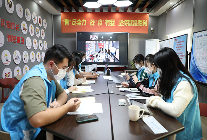 这个充满挑战又艰苦卓绝的过程,不仅加强了青年突击队志愿者对于防疫专业知识的理解,也提高了团队的组织力与凝聚力。青年志愿者联合会檀丽娟同学说道:“我和突击队的骨干志愿者每天超过10个小时坐在会议室办公桌前,与专家开会分析预案具体细节的科学性,与学校各部门老师积极沟通探讨预案实践的可行性。经过十余次修缮,最终形成了一份得到多方认可的应急处理预案。希望我们能成为志愿者同学们的坚强后盾。”