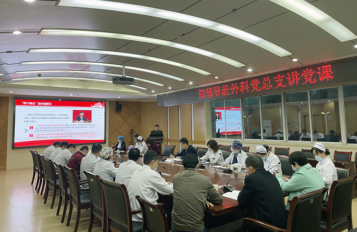 该院院长孙倍成为外科党总支讲授了党的二十大精神专题党课,并结合党的二十大报告、《关于推动公立医院高质量发展的意见》以及医院工作实际,详细阐释了医院管理层面应如何衷心拥护“两个确立”、忠诚践行“两个维护”,推动医院高质量发展。他激励总支全体党员要继续以学科建设为重要标杆,鼓励临床创新,在不断突破学术成果的同时,努力提升声誉水平,利用重点学科的影响力,带动一批学科群联动发展,将科教兴国战略转化为医院学科和人才队伍建设成果,为医院高质量发展贡献智慧和力量。