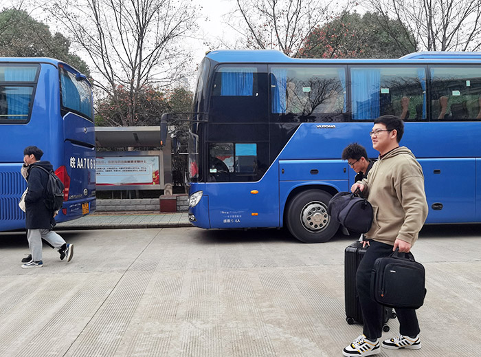 暖心相送,归途有爱。为了减少乘坐公共交通工具过程中疫情传播的风险,学校连夜紧急安排安全规范的接送车辆,三个校区同步开通“安医专线”,多时段发车,“点对点”闭环运送学生到汽车站、火车站和飞机场,守护学生平安离校“最后一公里”。