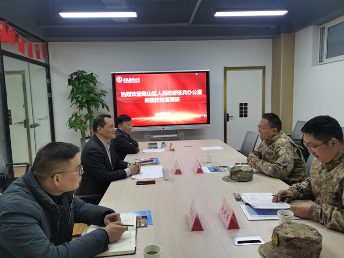 12月1日下午,蜀山区征兵办副主任、人武部副部长李威一行到我校调研征兵工作和“两站两服务”平台建设情况。校党委学工部部长、征兵工作站副站长马军成,党委学工部副部长杜文海参加调研。