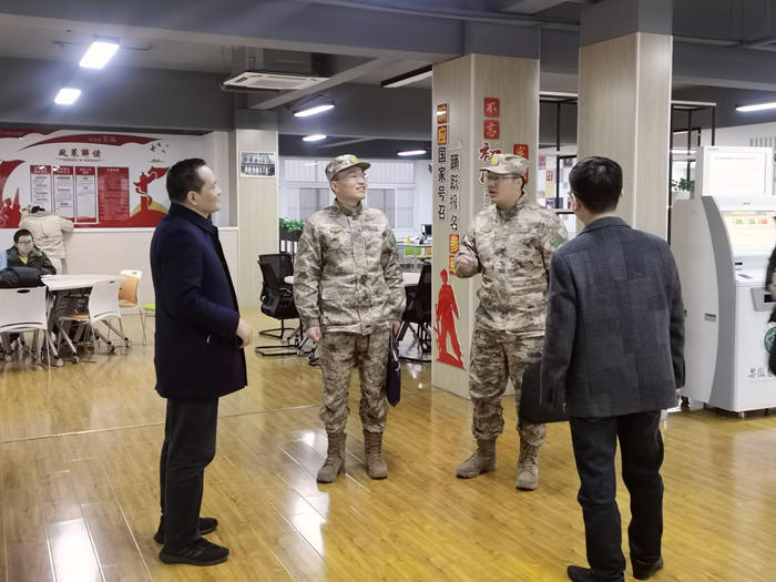 校征兵站工作人员及部分退役复学大学生士兵陪同参与此次调研。(校征兵工作站 严霍生)