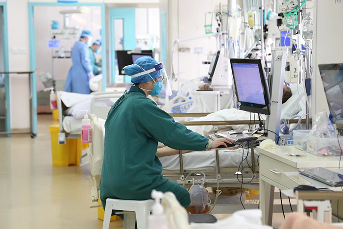 “时间不等人,病情不等人。”医院延长呼吸与危重症医学科、心血管内科等科室的门诊服务时间,有效分流了急诊的压力。同时成立急危重症患者救治专家团队,实现患者分级分类收治,保障危重症患者救治。“急危重症救治专家组对全院收治新冠患者的科室进行统一培训,制定统一方案和标准。由呼吸与危重症医学科副主任医师包保病区,安排专家组对危重患者进行全院指导巡诊,每晚召开全院救治工作例会,对诊治存在问题及时梳理,现场解决。”该院执行院长田仰华谈道。