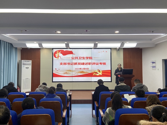 2月9日,公共卫生学院召开2022年度党支部书记抓党建暨支部学科系年度考核会议,该院党委书记潘莉莉主持会议,全体院领导出席会议。