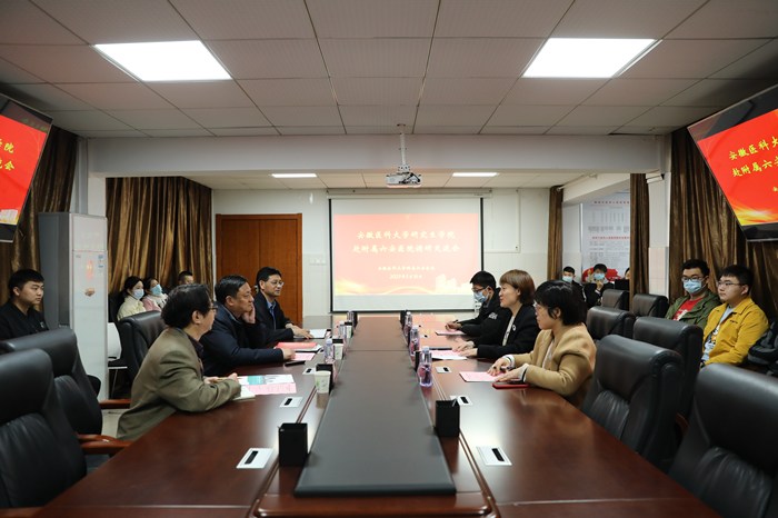3月16日,党委研工部部长潘莉莉带队走访附属六安医院(六安市人民医院),就研究生培养教育、管理等方面工作进行专题调研。该院党委书记、院长孙良业,院党委副书记、工会主席罗兴无出席调研交流会。