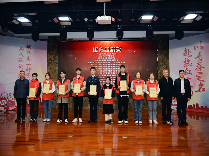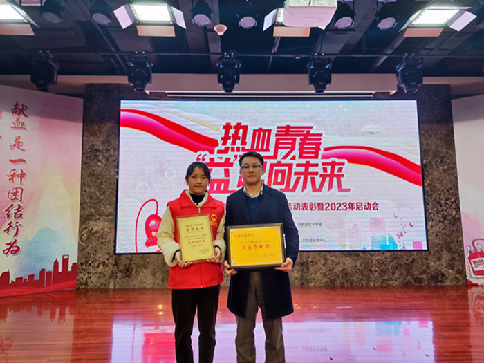 近日,安徽省血液中心举办2022年“无偿献血进高校”公益活动表彰暨2023年启动会,我校荣获“突出贡献奖”和“优秀组织奖”。