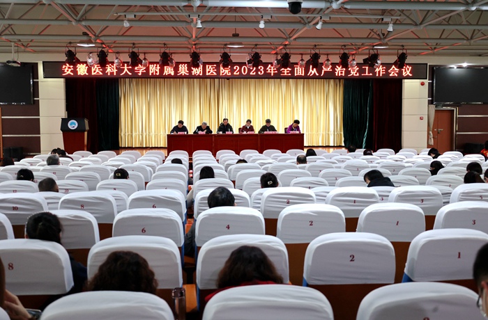 近日,附属巢湖医院在综合服务楼六楼报告厅召开2023年全面从严治党工作会议,深入学习贯彻党的二十大和二十届中央纪委二次全会精神,分析研判医院全面从严治党形势,部署2023年工作。该院党委副书记、院长作题为《严字当头 清风扬帆,以全面从严治党新成效奋力开创医院高质量发展新局面》的专题报告。院纪委书记王陶主持会议,并传达了2023年全省教育系统全面从严治党工作会议以及学校2023年全面从严治党暨警示教育工作会议精神。全体在院领导出席会议。