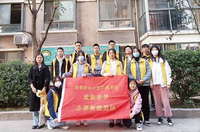除此之外,作为安医大学子,志愿者们结合专业知识,给社会各界送去温暖。比如,前往合肥市第六十八中学开展“性教育”讲座,引导孩子们学习正确的性知识;在敬老院福利院,志愿打扫、陪伴老人聊天;在医院参加志愿服务,守护新生命的诞生。