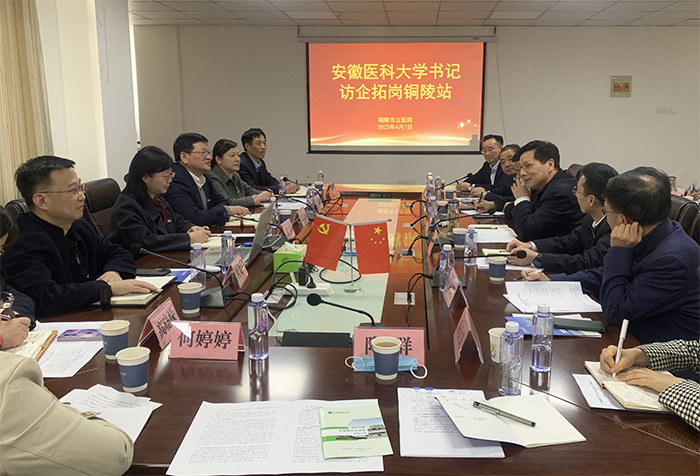 4月7日,校党委书记顾家山赴铜陵市多家医院开展访企拓岗促就业走访调研活动。铜陵市委书记丁纯亲切会见顾家山一行,铜陵市委常委、宣传部长潘荣华陪同调研。
