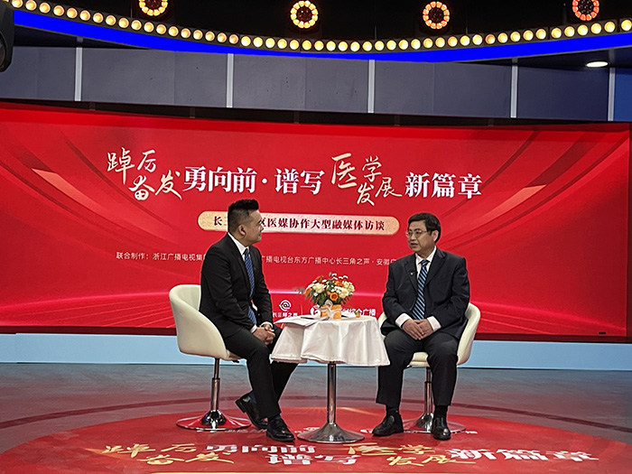 此次长三角地区医媒协作大型融媒体访谈由浙江广播电视集团浙江之声、上海广播电视台东方广播中心、安徽广播电视台新闻综合频率联合推出,邀请上海、浙江、安徽三地大型公立综合医院主要负责人,结合全国两会精神,全面展现长三角地区高质量医学发展新成果、新成就,深入推进跨地域深入协作。(第一附属医院党委宣传部)
