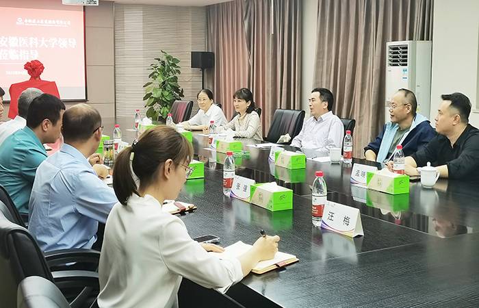 走访调研中,吕雄文充分肯定了合肥医工医药股份有限公司作为我校本科生和研究生实习实践基地做出的突出贡献,并表示将与该企业继续保持密切合作。座谈会上,吕雄文详细了解了公司的发展现状、岗位需求和2023年人才招聘等方面情况,并就学校发展历程、教学科研、人才培养、健康服务能力和新医科建设前景作了详细介绍。他表示,此次“访企拓岗促就业”专项活动,是双方深化校企合作、强化产教融合的重要途径,也是为2023届毕业生开拓更多就业岗位和就业机会、千方百计解决毕业生就业难题、全力促进毕业生更加充分更高质量就业的重要保障。