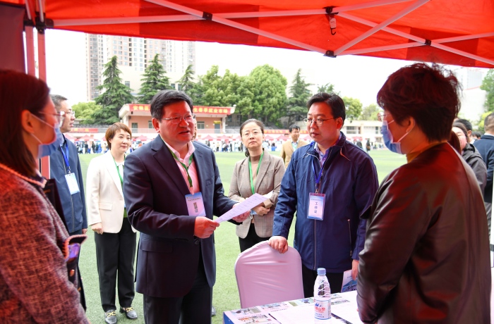 4月22日,学校在梅山路校区运动场举办2023年毕业生春季就业市场。校党委书记顾家山,校党委副书记谢瑞瑾,副校长肖圣龙,校纪委书记、省监委驻我校监察专员黄新美来到现场,与用人单位和毕业生亲切交谈,了解用人单位需求和学生的求职意愿。