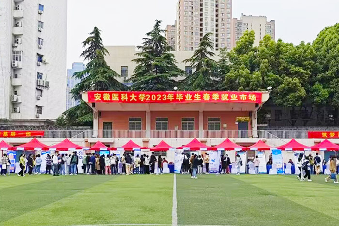 此次就业市场是我校继3月11日举办安徽省医药类毕业生就业市场之后又一次就业招聘盛会,来自北京、辽宁、上海、浙江、江苏、安徽等10个省份超过100家用人单位参加,提供岗位合计3500个,其中苏州工业园区卫健委等组团参加。“感觉学校的招聘会一直不断在进行,从学校到学院,几乎每周都会有大大小小各类的招聘,真的是就业招聘不断线。感谢学校为我们毕业生找工作创造各种机会。”来自第一临床医学院的毕业生小周在现场接受学生记者采访时说道。