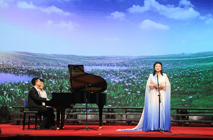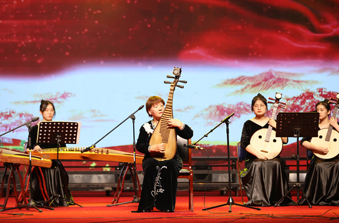 我校艺术教育中心专、兼职教师也轮番登台,娴熟的技艺、深情的演绎赢得全场观众的热烈掌声。著名琵琶演奏家、国家一级演奏员潘嫦青用一曲《井冈山上太阳红》表达出对党和祖国的深深热爱之情。中国青年单簧管演奏家冯伟单簧管独奏《迎新春舞曲》,为观众带来万物复苏、生机勃勃的春日气息。我校专职教师蔡婕、付梦宇带来的《敕勒歌》,歌咏了北国草原壮丽富饶的风光,表达了人民群众对家乡、对生活的挚爱。