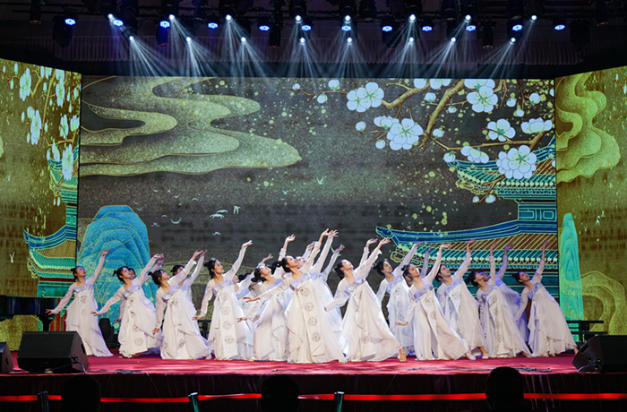 大学生礼仪团带来的《国韵华服》以及大学生芳华舞蹈团表演的舞蹈《唐印》将一件件极富民族韵味的服饰呈现于舞台,用实际行动传承中华优秀传统文化。大学生良医合唱团演出《彩虹》《莫尼山》《父亲写的散文诗》,唱出了对美丽世界、故乡和家人的热爱,奏出了新时代的筑梦强音。
