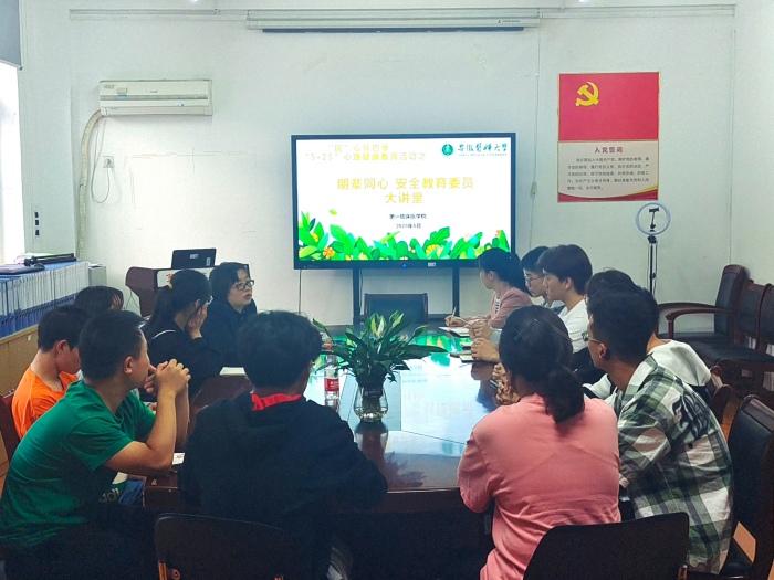 “5·25”大学生心理健康日前夕,第一临床医学院“朋辈同心——安全教育委员大讲堂”活动,该院学生党总支副书记高晓妹主持活动,各专业安全教育委员代表参加。