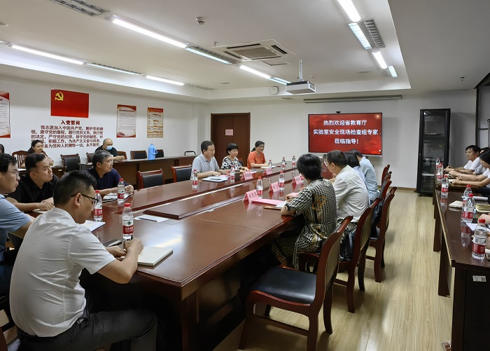 6月28日,省教育厅实验室安全现场检查第三工作组来校检查指导实验室安全管理工作,副校长梁朝朝主持迎检工作会。