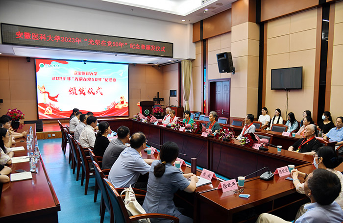 在认真聆听老党员饱含深情的发言后,谢瑞瑾指出,广大老党员在党的领导下,呕心沥血、忘我工作,为学校的建设和发展贡献了重要力量。在中国共产党成立102周年即将到来之际,向老党员颁发“光荣在党50年”纪念章,是对坚守为党育人、为国育才初心使命,为医学教育和学校事业发展做出突出贡献的老党员、老前辈的一次集中致敬,也是全校师生党员一次淬炼思想、锤炼党性的现场教学,更是一场精神和心灵的深刻洗礼。