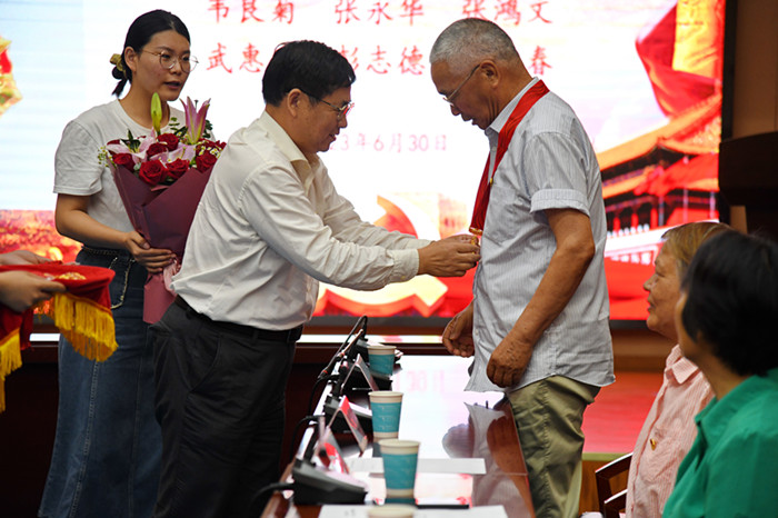 “向老党员颁发‘光荣在党50年’纪念章,这是党中央对老党员的关怀褒奖。我会永远听党话、跟党走,做中国式现代化新征程的‘啦啦队’!”退休干部、老教授武惠庭在发言中说。
