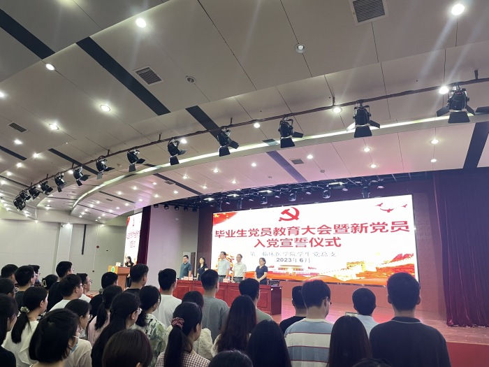 6月26日上午,第一临床医学院在南校区多功能厅举行毕业生党员教育大会暨新党员入党宣誓仪式,该院学生党总支班子出席会议。