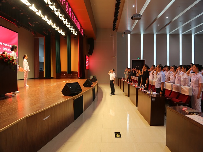 6月30日下午,附属亳州医院在学术报告厅举行庆祝中国共产党成立102周年大会,深入学习贯彻党的二十大精神,充分展示先进典型精神风貌,进一步形成见贤思齐、争做先锋的良好氛围。该院党委书记邓华出席会议并讲授《知敬畏、存戒惧 守底线,做清正廉洁的共产党员》的专题党课。大会由该院党委专职副书记马景贺主持。