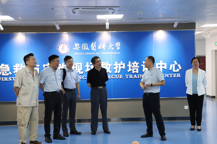 座谈会后,吕雄文陪同上海普陀区卫生系统一行参观了学校实验教学中心。