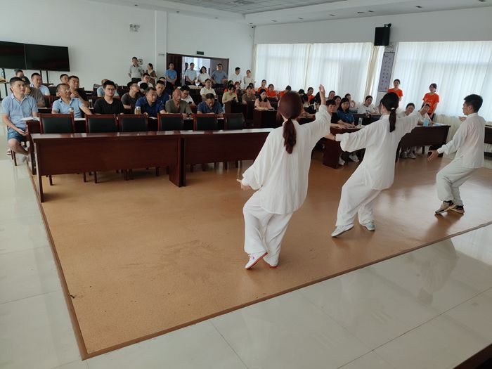 在谭家桥镇政府,徐朝阳现场观摩了实践团成员开展的常见医疗知识科普讲座及太极拳教学等宣传活动,当地群众积极参与,并与实践团成员深入交流互动,现场掌声不断,活动氛围热烈。