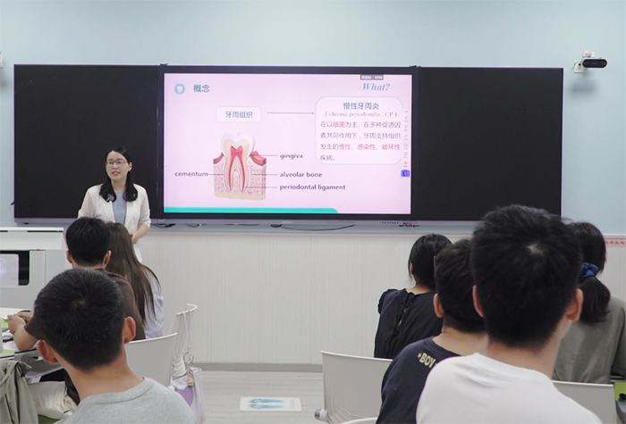“课堂是教学改革的‘最后一公里’。”孙晓瑜深知,不论是何种教学比赛,最终目的都是更好促进教学,提升课堂教学质量,从而培养更高质量的人才。作为《牙周病学》课程的主讲教师,她始终坚持以学生为中心的教学理念,将翻转课堂、情景模拟、案例讨论等多种教学形式灵活运用于教学中,并经常邀请学生就课堂教学工作提出意见和建议,从学生的视角发现问题,不断改革创新教育教学方法。
