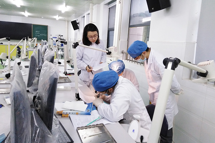 这段对话并不是发生在口腔医院的诊室里,而是在孙晓瑜实验课的课堂上。口腔医学专业的学生正十分投入地扮演着“医生”的角色,结合平时课本所学,为“病人”看诊。