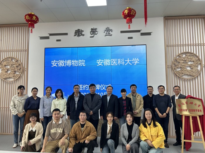 10月27日,我校与安徽博物院合作共建“大思政课”实践教学基地签约仪式在安徽博物院二楼徽学堂举行。安徽博物院副院长卞坚,马克思主义学院党委书记谢宜鹏、院长柳泽民,教务处副处长卜娟娟出席签约仪式。