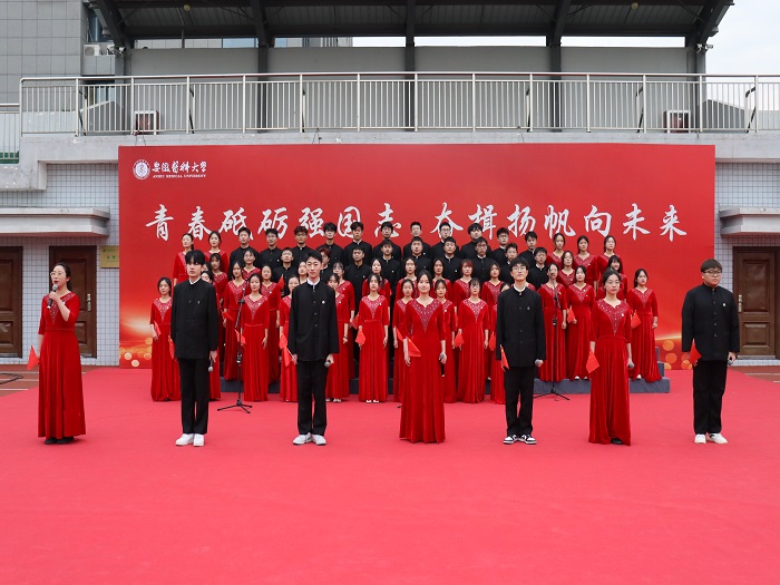 “国旗的映衬下,展现中华民族崛起的坚定决心。中华儿女的心里,点燃国家复兴的炙热激情”。生物医学工程学院2022级智能医学工程专业沈彤在演讲中表达了安医学子们共同的心声。“我的祖国,高山巍峨。雄伟的山峰俯瞰历史的风狂雨落……”国旗下集体朗诵的《祖国啊,我亲爱的祖国》,道出了学子对祖国深情的告白和祖国无限的热爱。“坚定理想信念,厚植家国情怀,奋斗不止,行健不息,乘风破浪,兴校报国,引发现场同学们的强烈共鸣!”