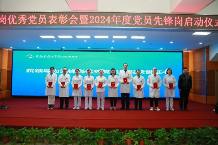 各党总支、党支部书记,党委各部门负责人,2023年度先锋岗优秀党员及2024年度全体先锋岗党员参加活动。全体党员面向党旗重温了入党誓词。(第二附属医院)