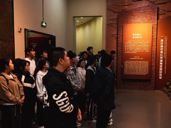 参观学习过程中,大家依次参观了“战前形势”“战役准备”“突破江防”“战役胜利”“英烈业绩”等展厅。一件件历史文物、一幅幅革命影像,生动再现了渡江战役的艰难险阻和400万军民奋勇南渡的壮阔画面,带领大家走进百万雄师过大江的历史长河,重温了那段靠老百姓用小船划出战役胜利的革命历史。在革命烈士名录墙前,该院师生怀着无比崇敬之情向革命先烈默哀致敬并献上鲜花,深情寄托对革命先烈的无限追思与敬仰。
