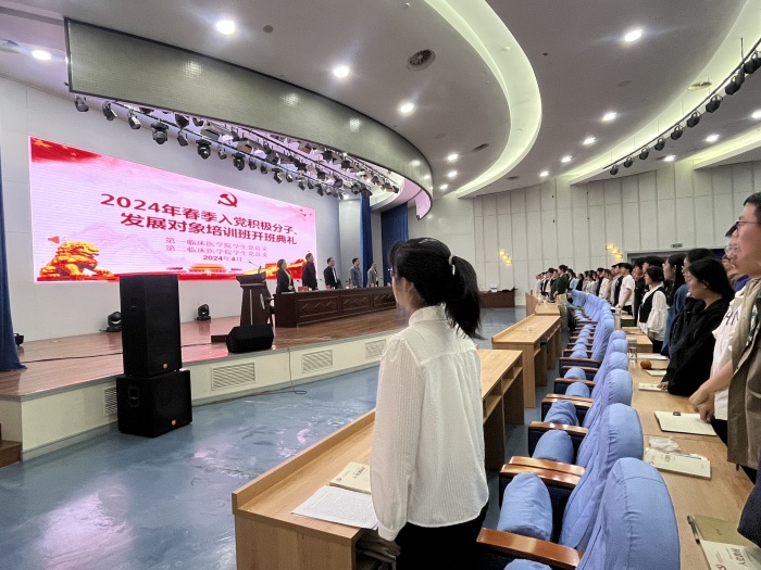 4月11日晚,由第一临床医学院学生党总支、第二临床医学院学生党总支联合举办的2024年春季入党积极分子、发展对象培训班开班典礼,在第一附属医院绩溪路院区内科医技楼四楼报告厅举行。校党委常委、组织部长李阳新出席开班典礼并讲话。第一临床医学院(第一附属医院)党委副书记、学生党总支书记李琮,第二临床医学院(第二附属医院)党委副书记鲍丙刚,第一临床医学院学生工作部副部长孙民出席开班典礼。第一临床医学院学生党总支副书记高晓妹主持典礼。