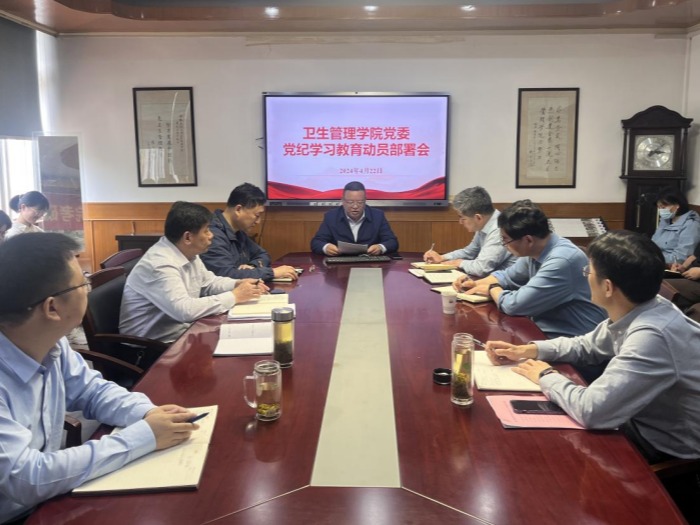 4月22日上午,卫生管理学院召开党纪学习教育动员部署会,传达中央党的建设工作领导小组会议精神、中共中央办公厅印发的《关于在全党开展党纪学习教育的通知》文件精神,解读学校党纪学习教育实施方案,并对学院党纪学习教育进行具体安排。该院党委书记赵云峰作动员讲话。