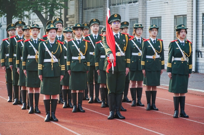 清晨,英姿飒爽的校国旗护卫队队员护卫着五星红旗行进至升旗台。伴随着《义勇军进行曲》激昂的旋律,全体师生庄严肃立,向国旗行注目礼,高唱国歌,用青春的声音表达安医人的爱国之情。