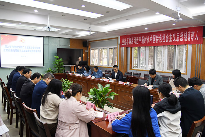 马克思主义学院党委副书记、院长柳泽民受邀作《深入学习贯彻党的二十届三中全会精神 汇聚促进高等教育高质量发展的强大动能》专题报告,从“党的二十届三中全会的主要内容与精神”“改革的历史回眸:开篇、续篇、新篇”“汇聚高等教育高质量发展强大动能”等三个方面,对全会精神作了全面宣讲和深入阐释。
