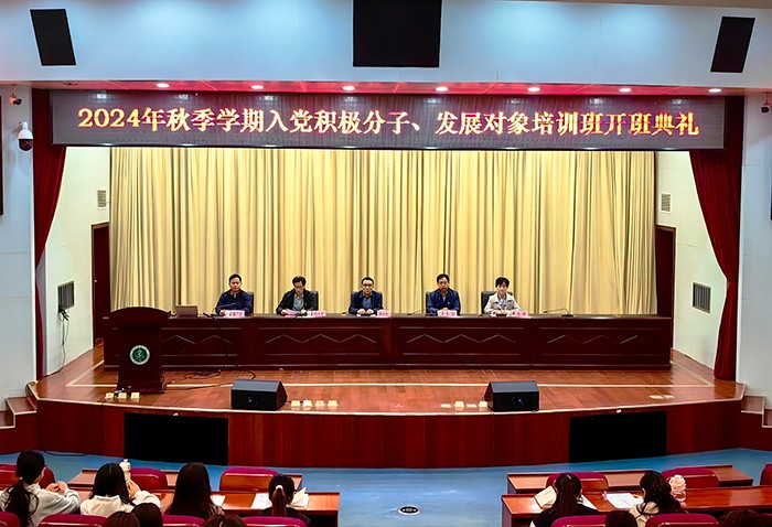 10月24日晚,药学院、临床药理研究所、第一临床医学院学生党总支、第二临床医学院学生党总支等四家单位联合举办2024年秋季学期入党积极分子、发展对象培训班。校党委常委、组织部部长李阳新出席开班式,并在开班式后为全体学员作题为《深入推进新时代党的建设新的伟大工程》的首场理论授课。